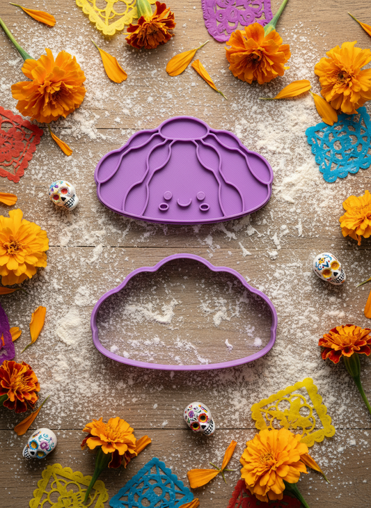 Cortador de galletas "Pan de Muerto Kawaii" con plantilla