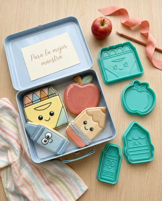 Set de Cortadores de Galletas con marcador Día del Maestro 🍎🖍️✏️