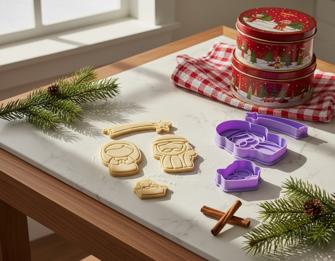 Cortadores De Galletas "Nacimiento" Navidad Con Plantilla