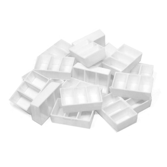 25 godetes completos con 3 divisiones plástico acuarela en pastilla ó artesanal