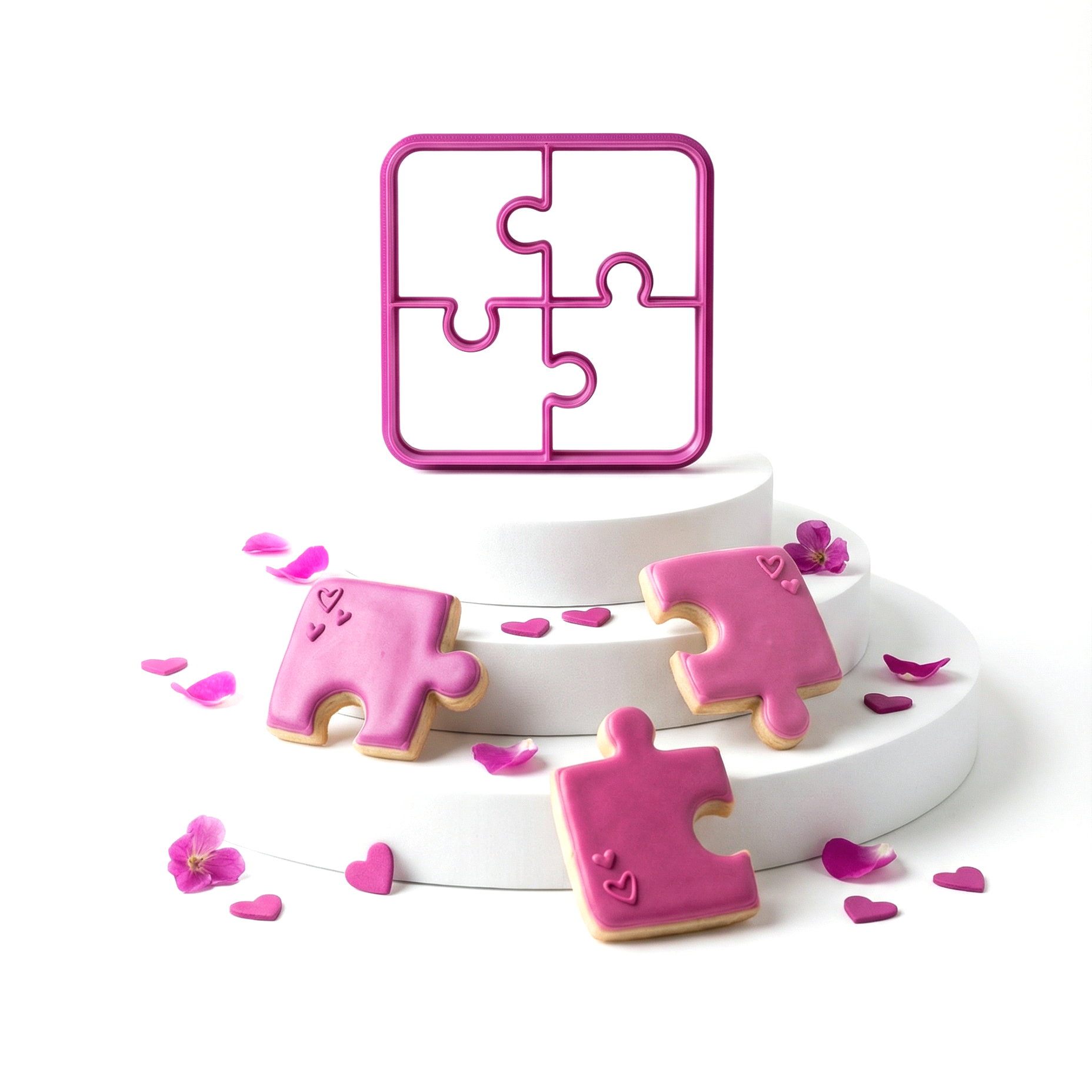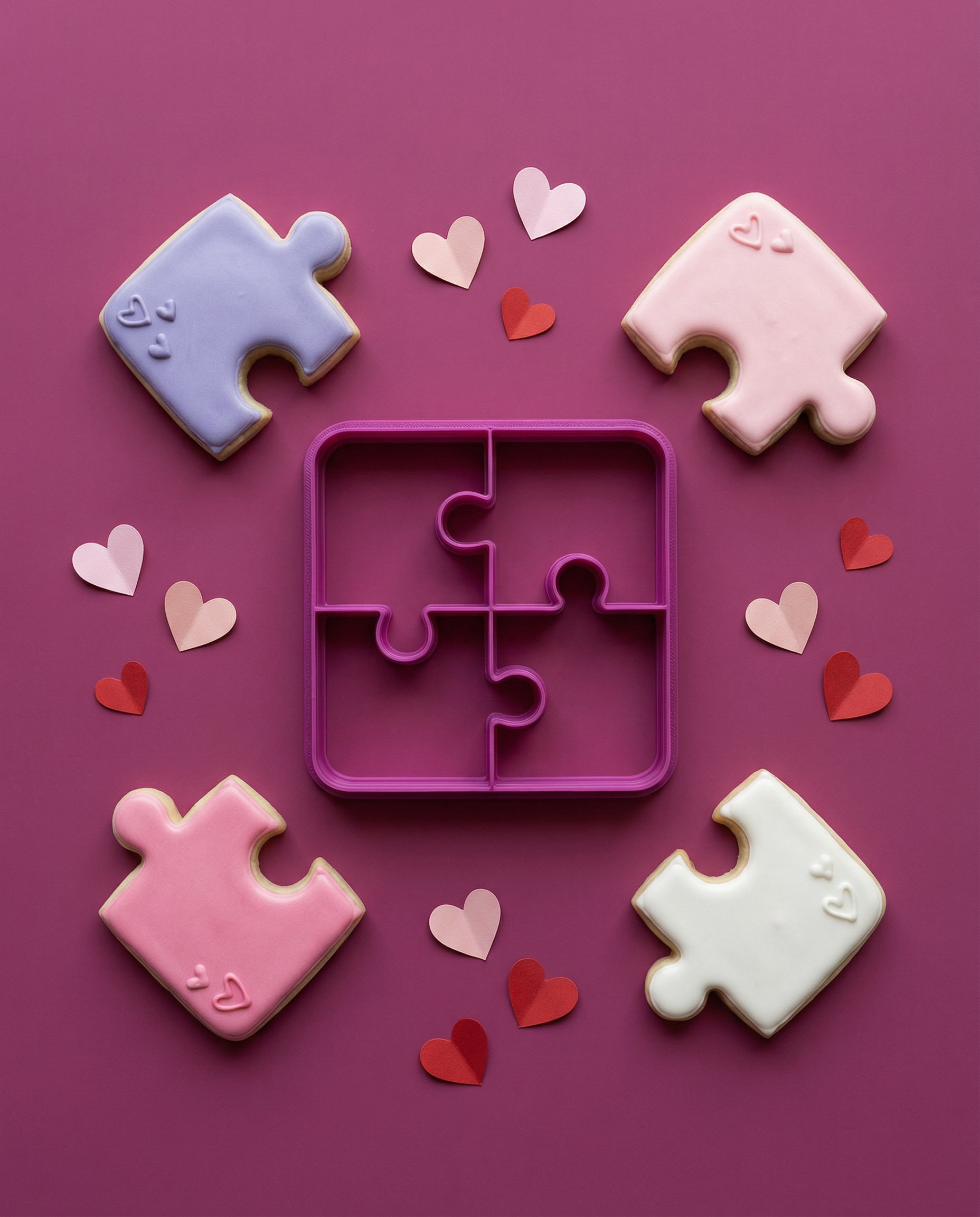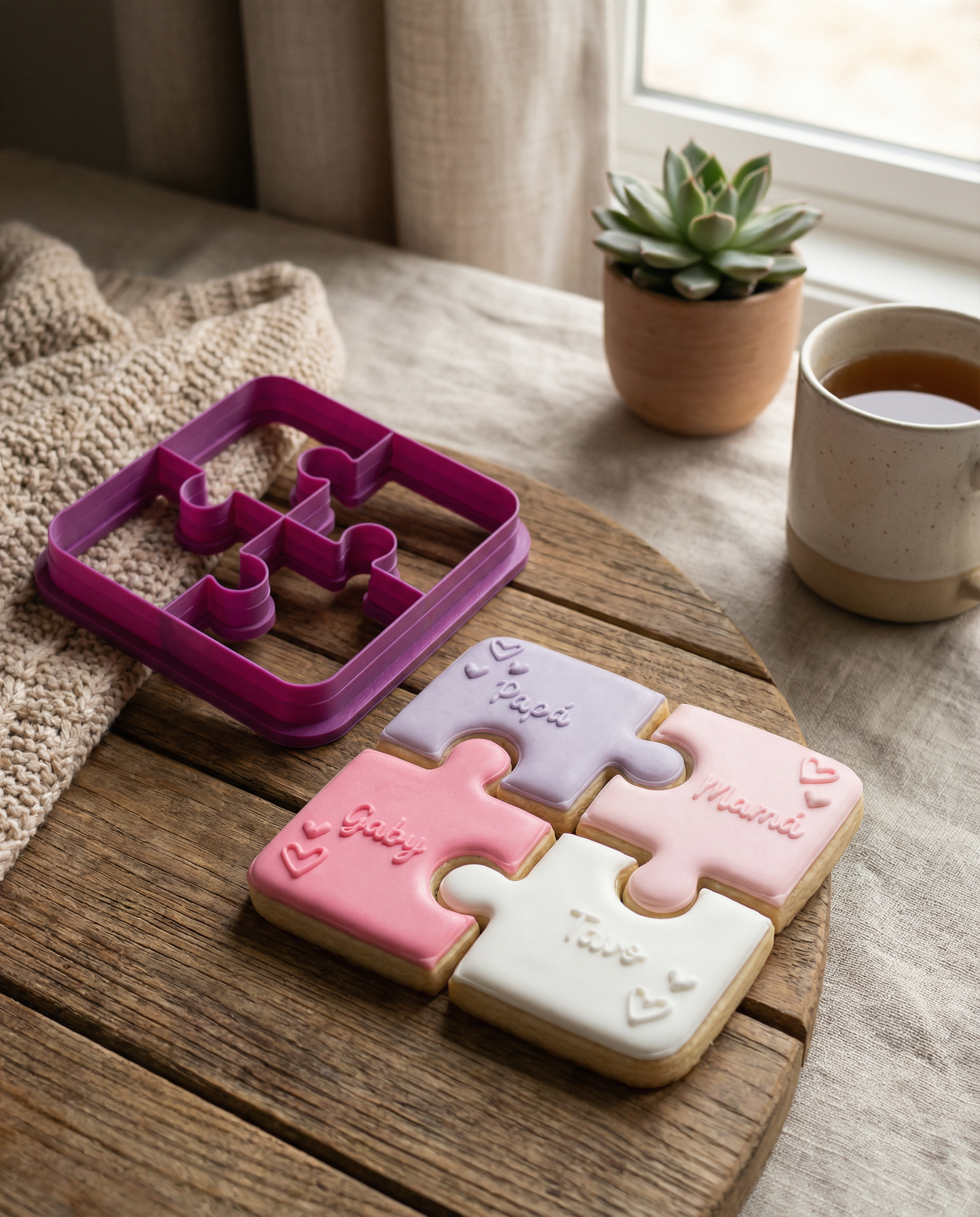 Este cortador de galletas en forma de rompecabezas cuadrado es ideal para crear galletas con significado: nombres de familia, iniciales de pareja o pequeños mensajes que se unen pieza por pieza.