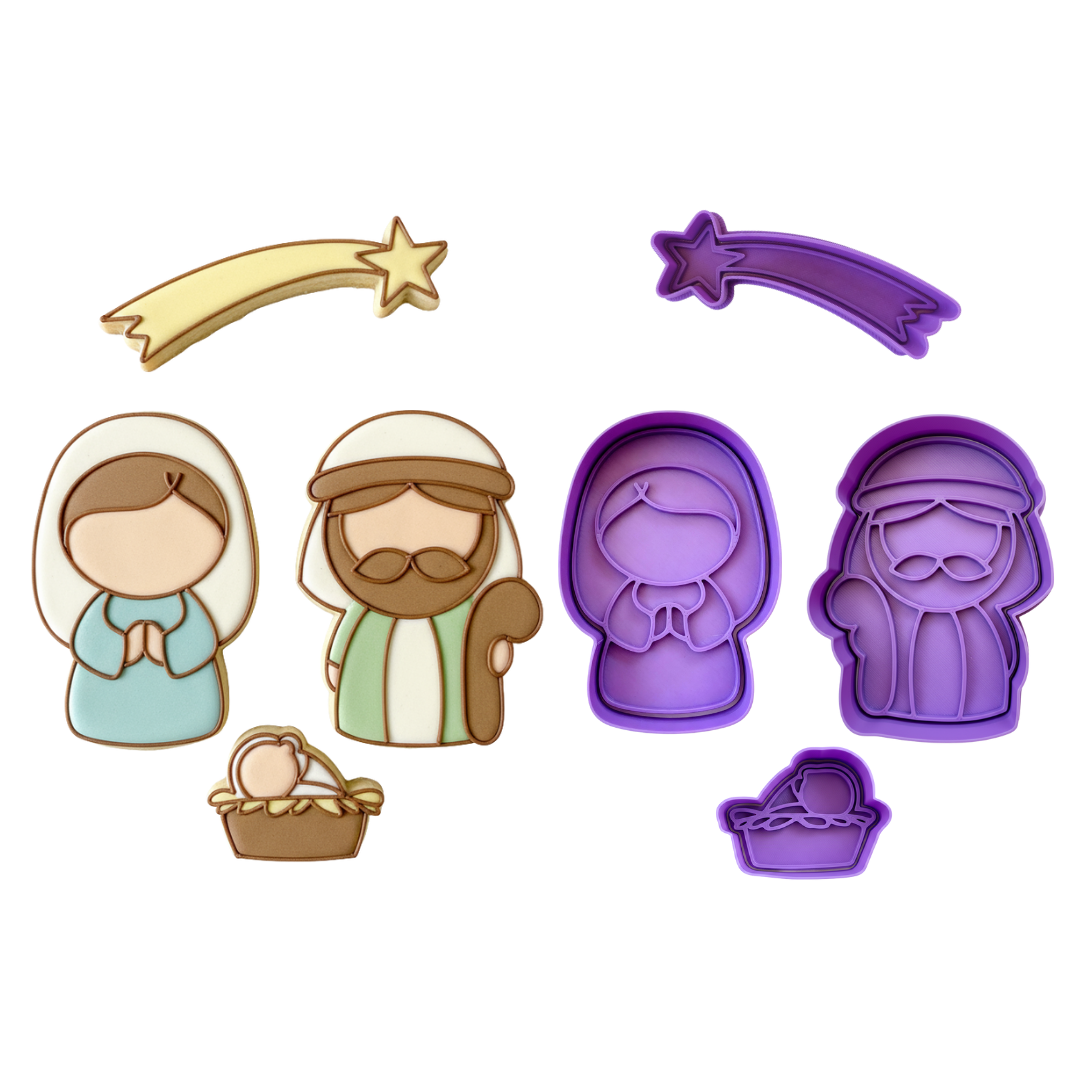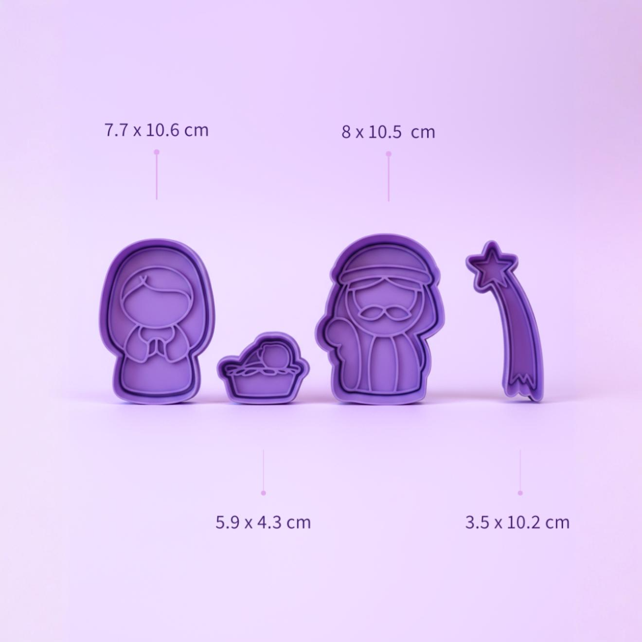 Cortadores De Galletas "Nacimiento" Navidad Con Plantilla
